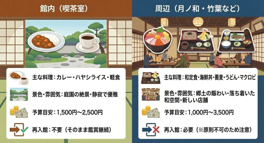 【比較表】館内ランチ vs 周辺ランチ
