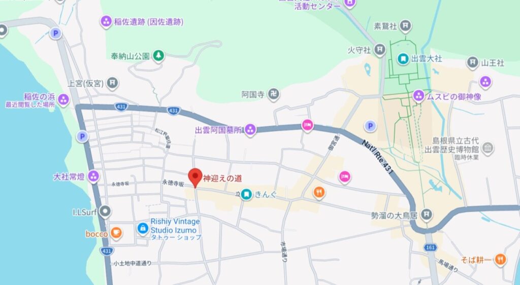 神在月には、全国の神々が稲佐の浜から出雲大社へ向かうとされており、この一帯の道は「神迎えの道」と呼ばれることがあります。