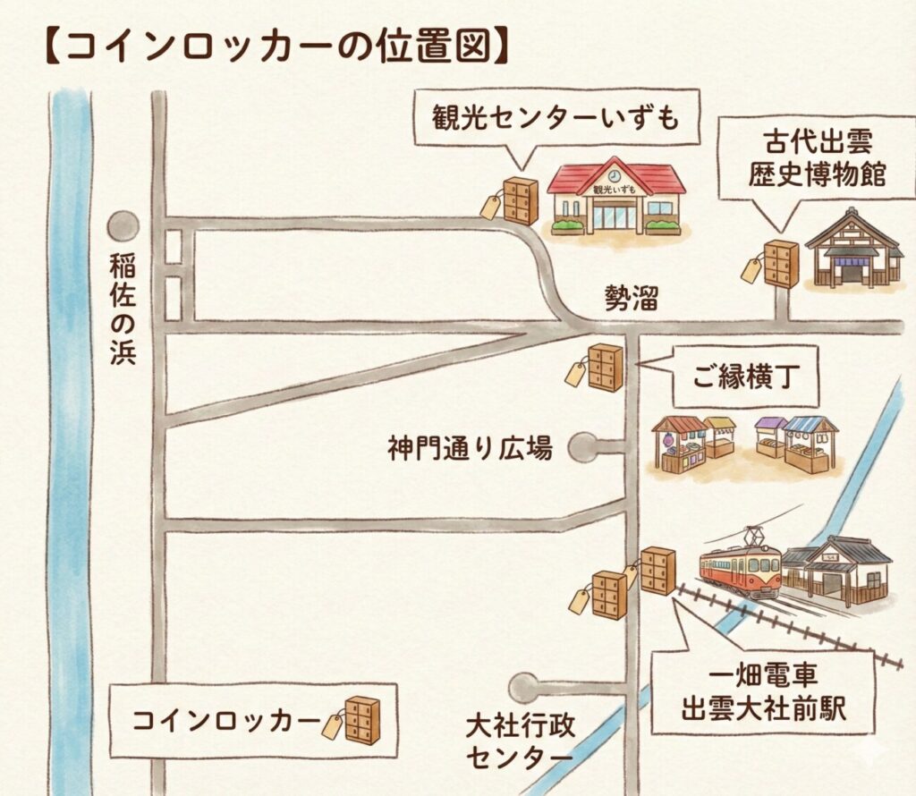 出雲大社周辺のコインロッカーの位置図と比較表